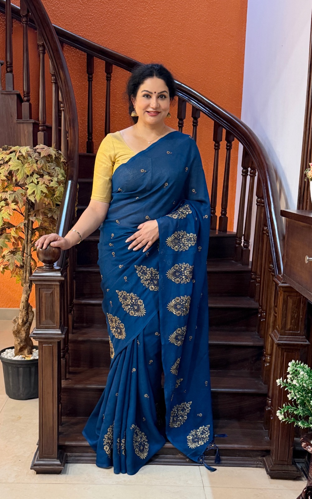 Elevate your ethnic wardrobe with this stunning Linen Jute Saree with Rich Golden Embroidery, designed to blend simplicity with luxurious detailing. Crafted from premium linen jute fabric, this saree offers a natural texture, breathable comfort, and graceful drape, making it perfect for both daytime and evening occasions.Related Product