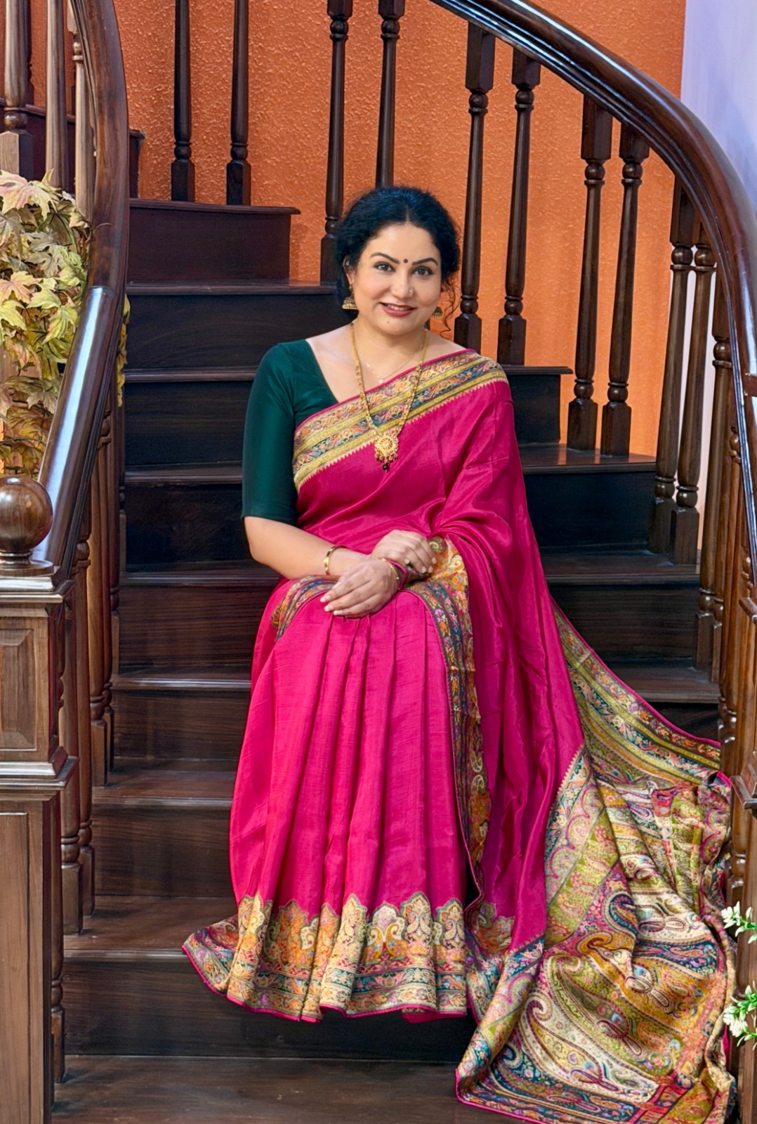 Experience timeless tradition and elegance with this Premium Pashmina Silk Saree, crafted for a rich and graceful look. Made from high-quality Pashmina silk fabric, this saree offers a smooth texture, soft feel, and luxurious finish, making it perfect for special occasions and celebrations.